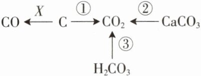 10. 碳及其部分化合物的转化关系如下图所示,其中X表示转化中的另一种反应物。下列说法错误的是(