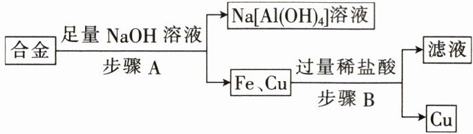 。(2)步骤A中反应的化学方程式表示为$2Al + 2NaOH + 6R = 2Na[Al(OH)_4] + 3H_2↑$,依据质量守恒定律知,R的化学式为