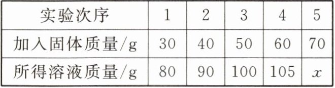 6.在一定温度下,将30 g、40 g、50 g、60 g、70 g的硝酸钾固体分别加入50 g水中充分搅拌,实验数据记录如下表所示。