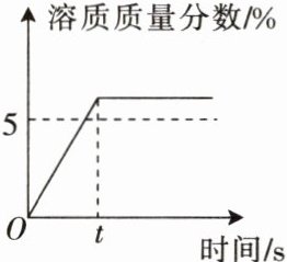 由图可知,最终配制的溶液溶质质量分数为$5\%$,而在$t$时刻时,溶质质量分数达到$5\%$后不再变化,说明在溶解过程中溶液已经达到了$5\%$的溶质质量分数,之后没有继续溶解更多溶质或者溶剂的量没有改变。