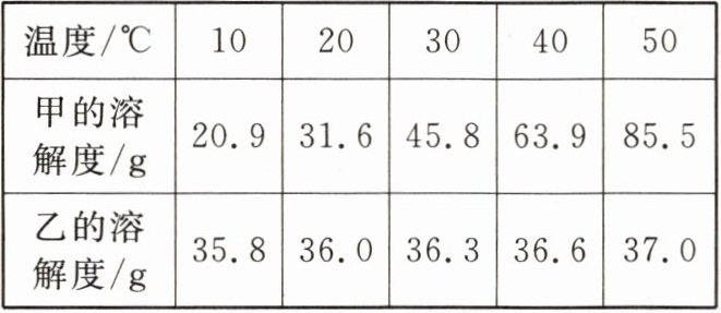 B.10 ℃时,100 g 甲溶液中最多可含甲的质量为 20.9 g