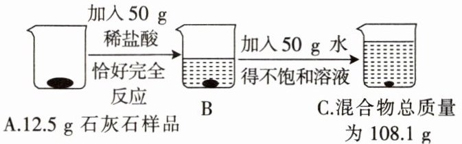A.12.5g石灰石样品 B C.混合物总质量为108.1g