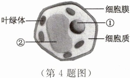 4. 在学习了动、植物细胞的结构后,某班开展了细胞模型制作活动。下图是小丽用彩泥制作的细胞模型。请完成下列有关习题。