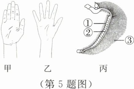 ②5个手指分开(如图乙所示),掌心紧贴桌面白纸,用铅笔沿手画出轮廓线。