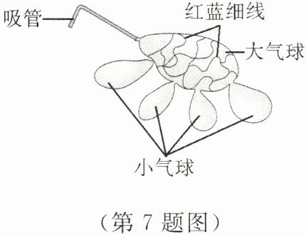 7. 模型构建是学习生物学的方法之一,选择恰当的材料制作模型,能直观地表示相应的结构和功能,提升探究实践的能力。下图所示模型模拟了鸟的呼吸,请分析并完成下列习题。