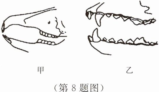 (3)下图是哺乳动物的牙齿结构示意图。根据北极熊的食性推测,它的牙齿组成与图
