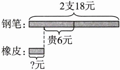因为$1$支钢笔比$1$块橡皮贵$6$元,在求出$1$支钢笔价钱的基础上,再通过减法就能求出$1$块橡皮的价钱。