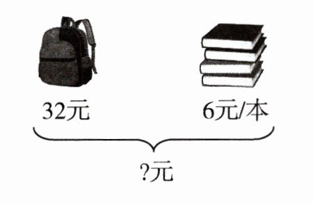 解析:考查加法和乘法的混合运算,通过图示可知要求买$1$个书包和$4$本书的总价钱,需要先算出$4$本书的价钱,再加上书包的价钱。