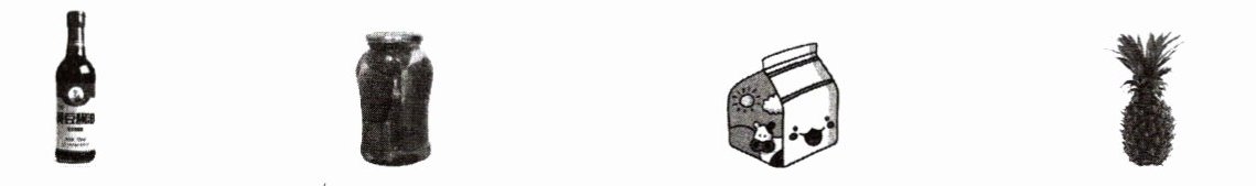 ①酱油 400克 ②罐头 1000克 ③牛奶 600克 ④菠萝 1千克