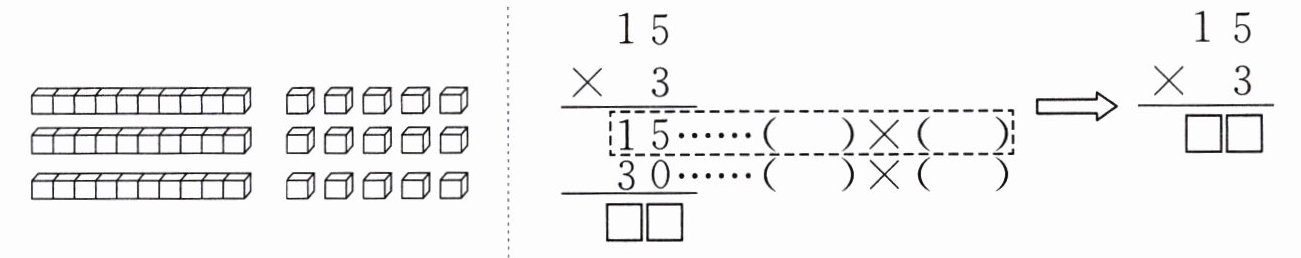 1.先在左图中圈出与竖式虚线框内对应的部分,再把竖式补充完整。