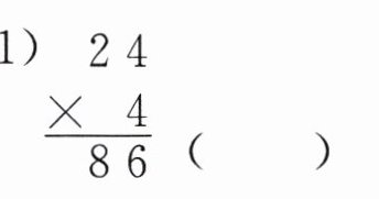 (1)$\begin{array}{r} 24 \\×\ \ 4 \\\hline 86\end{array} $( )