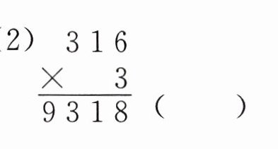 (2)$\begin{array}{r} 316 \\×\ \ \ 3 \\\hline 9318\end{array} $( )