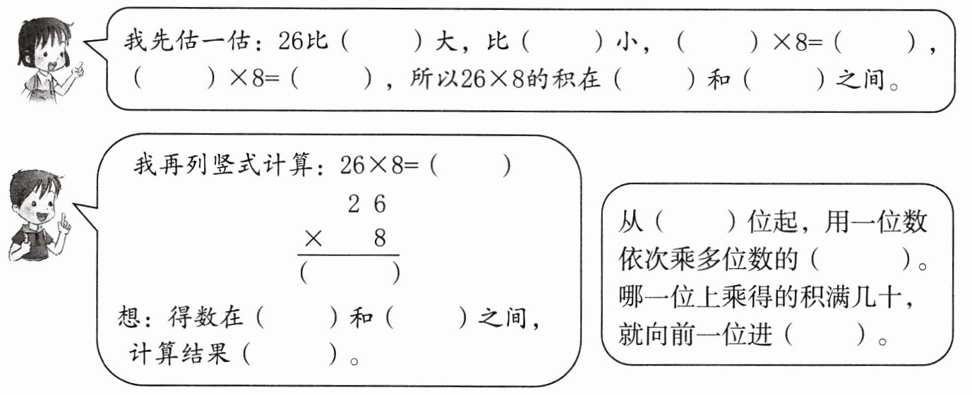我再列竖式计算:$26×8= $(