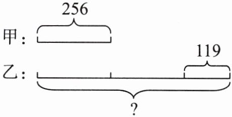 (线段图:甲线段标注256,乙线段为甲的2倍多119,标注“?”)