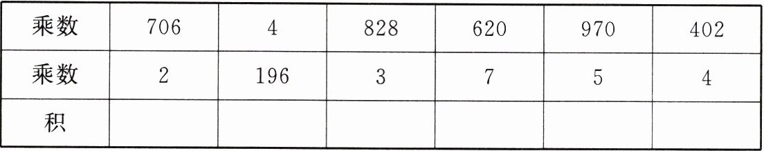 | 乘数 | 706 | 4 | 828 | 620 | 970 | 402 |