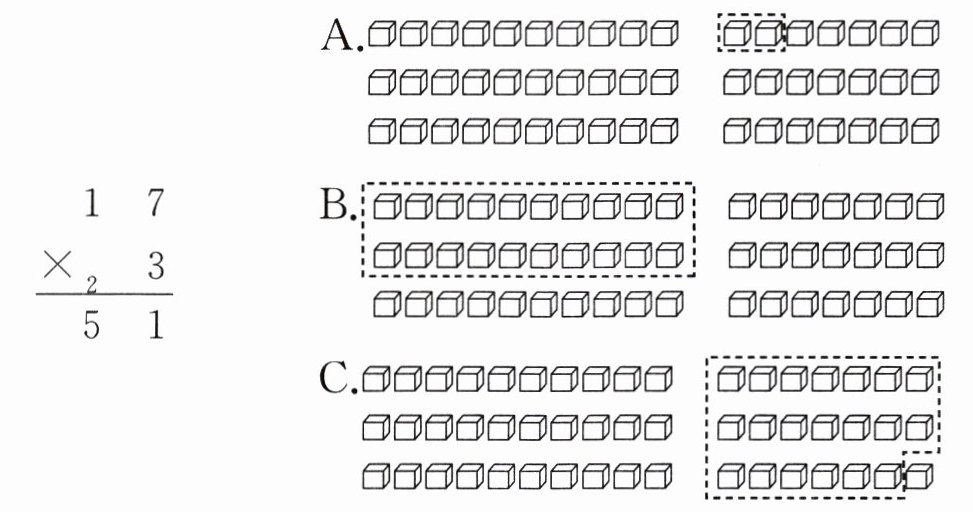 $\begin{array}{r} 17\\ ×3\\ \hline 51\end{array} $