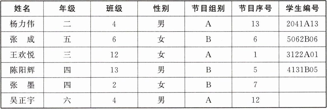 2.下面是阳光小学参加艺术节的学生(部分)信息登记表。