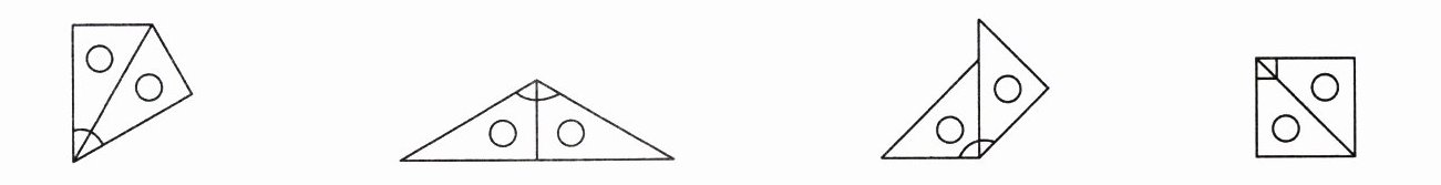 2.小军用两个同样的三角尺拼角,他拼成的各是什么角?