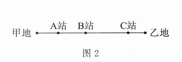 (2)一列从甲地开往乙地的高铁,沿途要停靠A站、B站、C站(如图2)。