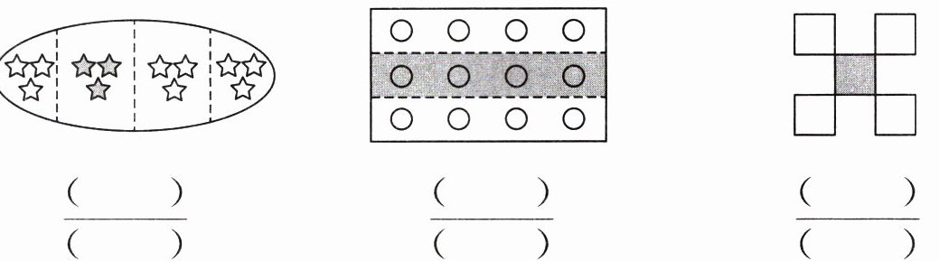 3.用分数表示下面各图中的涂色部分。$ (\frac{