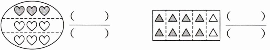 (3)在下图中涂出几个分母相同的分数,并按从小到大的顺序排列。