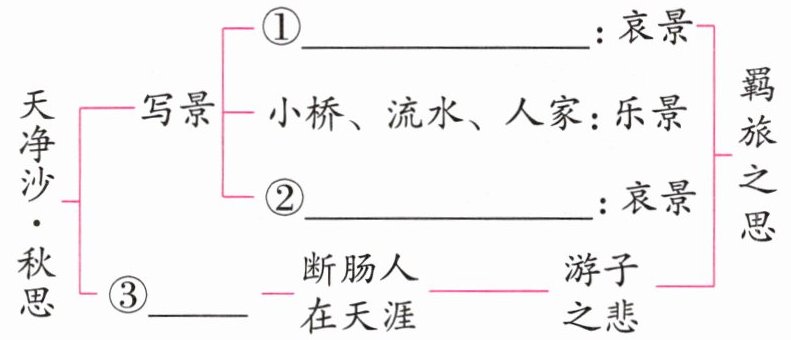2. “一切景语,皆情语也。”请你结合《天净沙·秋思》的内容,说说作者运用了哪些“景语”,表达了怎样的“情”。