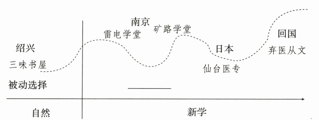 17. 阅读《朝花夕拾》时,可以通过鲁迅先生的“求学之路”探索他的心路历程,请根据下面的思维导图,完成下列任务。(3 分)