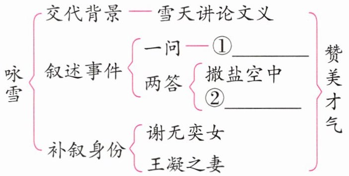 (1)一会儿雪下得更急了,谢太傅高兴地说:“白雪纷纷扬扬的像什么呢?”