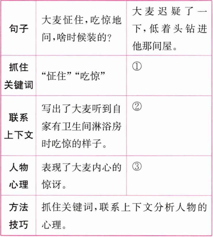 |方法技巧|抓住关键词,联系上下文分析人物的心理。| |