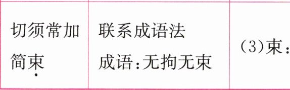 |切须常加简束|联系成语法成语:无拘无束|(3)束:____|