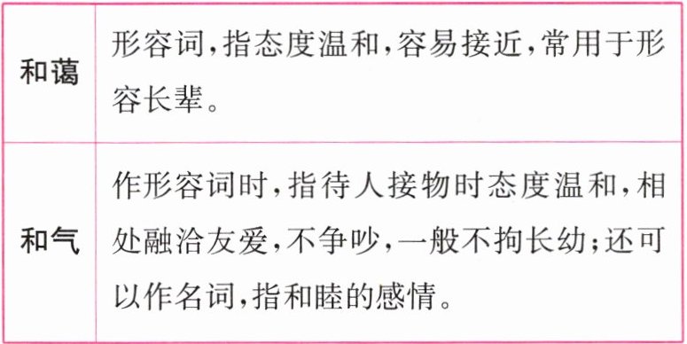 |和蔼|形容词,指态度温和,容易接近,常用于形容长辈。|