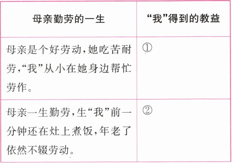|母亲是个好劳动,她吃苦耐劳,“我”从小在她身边帮忙劳作。|①|