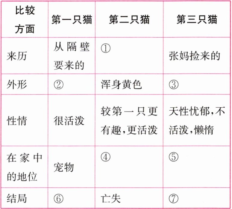 |比较方面|第一只猫|第二只猫|第三只猫|