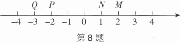 9. 在数轴上,点 A 表示 -3,如果将点 A 沿着数轴向右移动 7 个单位长度,再向左移动 3 个单位长度后,落在了点 B 处,则点 B 所表示的数的相反数是