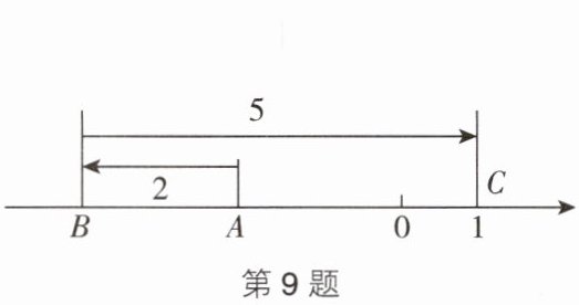 9. 如图,数轴上一动点$A$向左移动 2 个单位长度到达点$B$,再向右移动 5 个单位长度到达点$C$,若点$C$表示的数为 1,则点$A$表示的数为(
