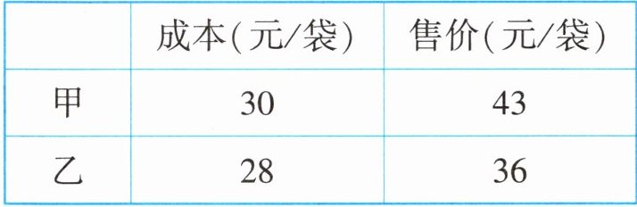 11. 某面粉加工厂加工甲、乙两种颗粒面粉,每天共加工两种面粉 $ 100 $ 袋,相关信息如下表: