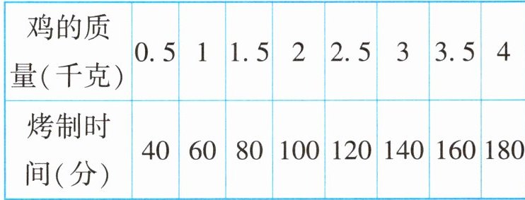 8. 某烤鸡店在确定烤鸡的烤制时间时,主要依据下面表格中的数据: