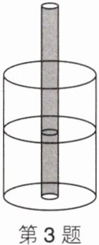 3. 如图,一个盛有水的圆柱形玻璃容器的内底面半径为 5 cm,容器内水的高度为 6 cm。把一根半径为 1 cm 的玻璃棒垂直插入水中,问容器内的水将升高