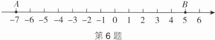 6. 在如图所示的数轴上,点 $A$ 表示的数为 -7,点 $B$ 表示的数为 5。