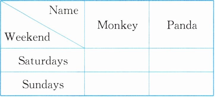 Panda:I wash my clothes and read books. I eat only two meals on Sundays.