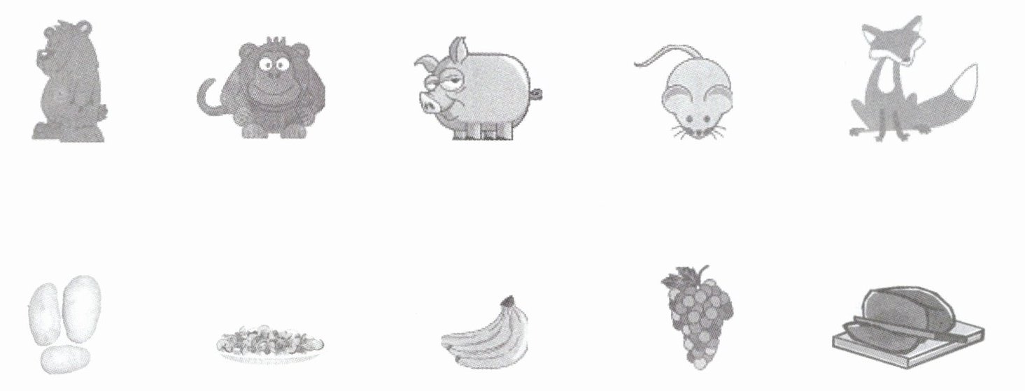 听音,帮下面的小动物连线它们爱吃的东西。
