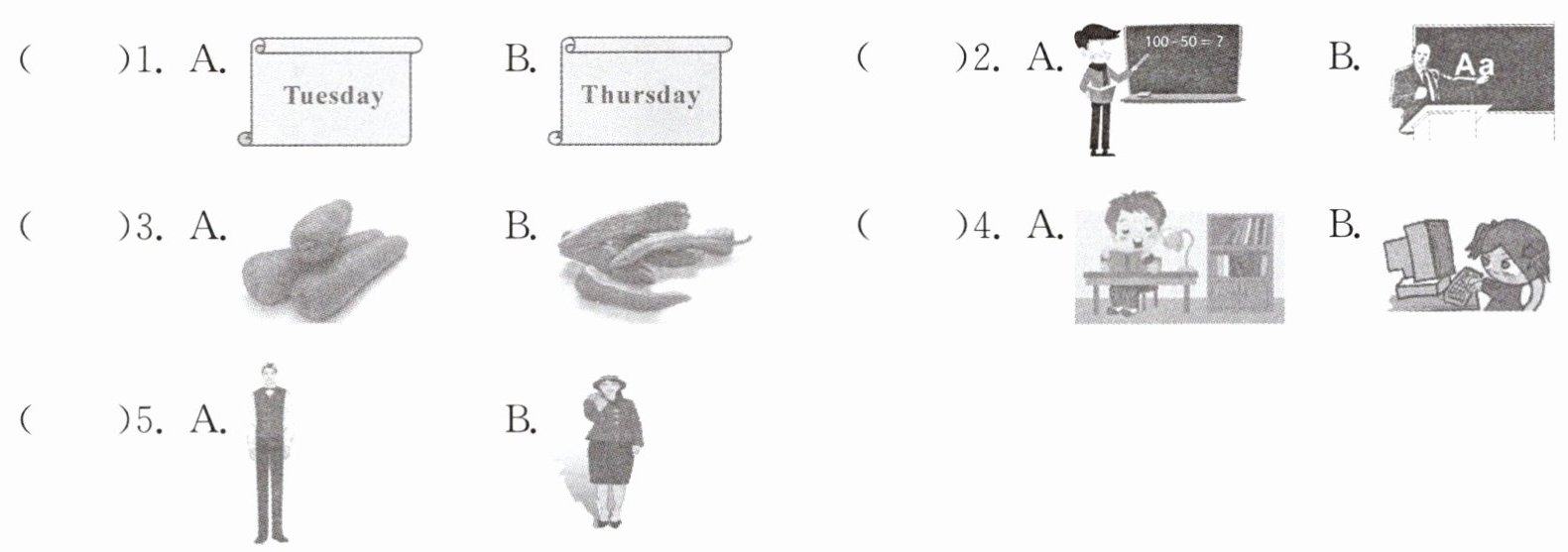 )3. A. I have onions and apples. B. I have English and PE. C. I have four classes.(