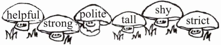 1. tall 2. helpful 3. polite 4. strong 5. shy 6. strict