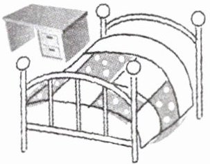 1. clock 2. photo 3. plants 4. beside 5. in front of 6. water bottle