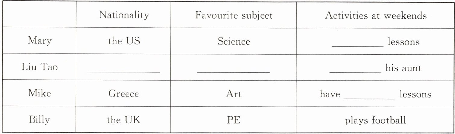 一、听录音,根据所听内容完成表格填空。(听三遍)
