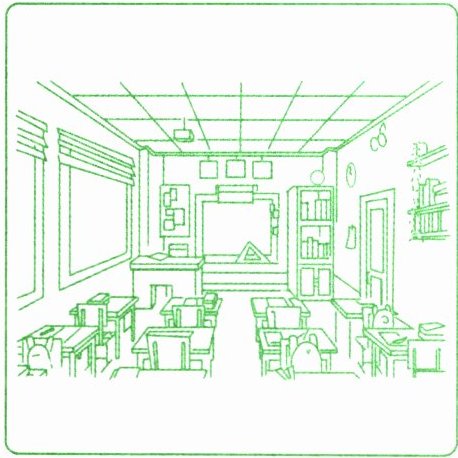 This is my classroom. It is big and clean. There are many desks and chairs in it. In the front of the classroom, there is a blackboard. Above the blackboard, there is a flag. There are some shelves on the wall. They are next to the clock. There is a door and a window in the wall. I like my classroom very much.