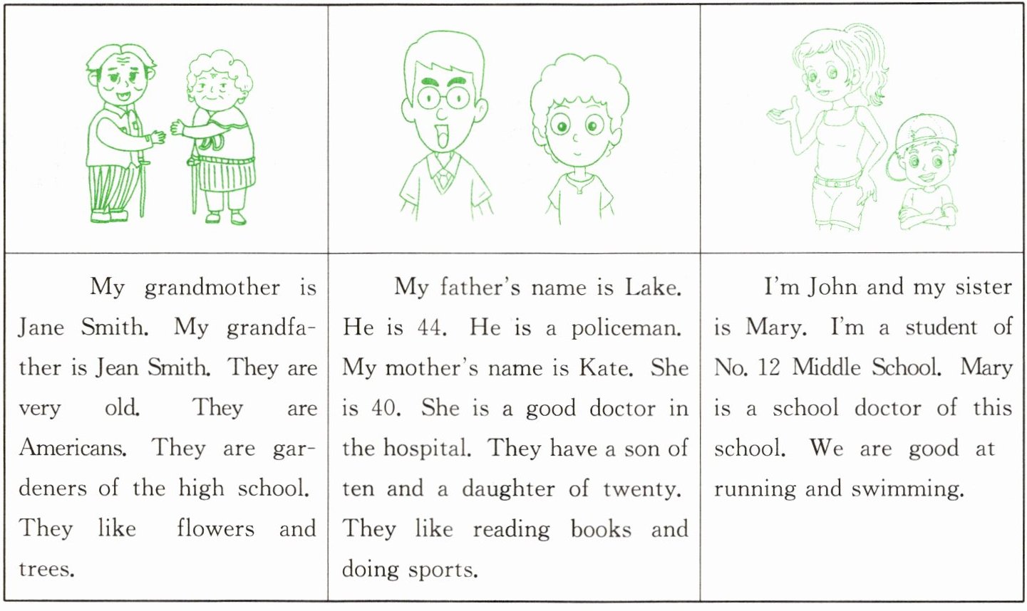 根据本单元所学内容和图片上的关键词,向你的同学介绍你的家人。