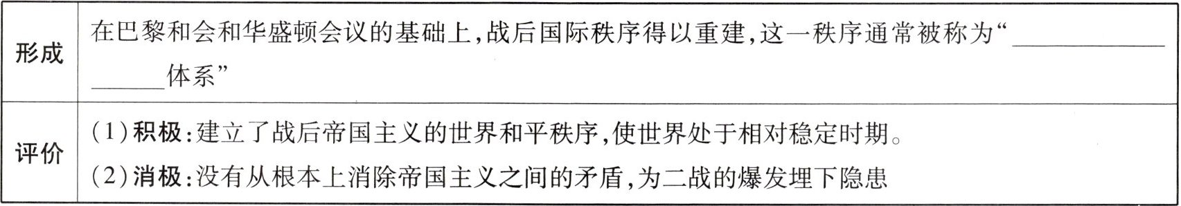 |评价|(1)积极:建立了战后帝国主义的世界和平秩序,使世界处于相对稳定时期。