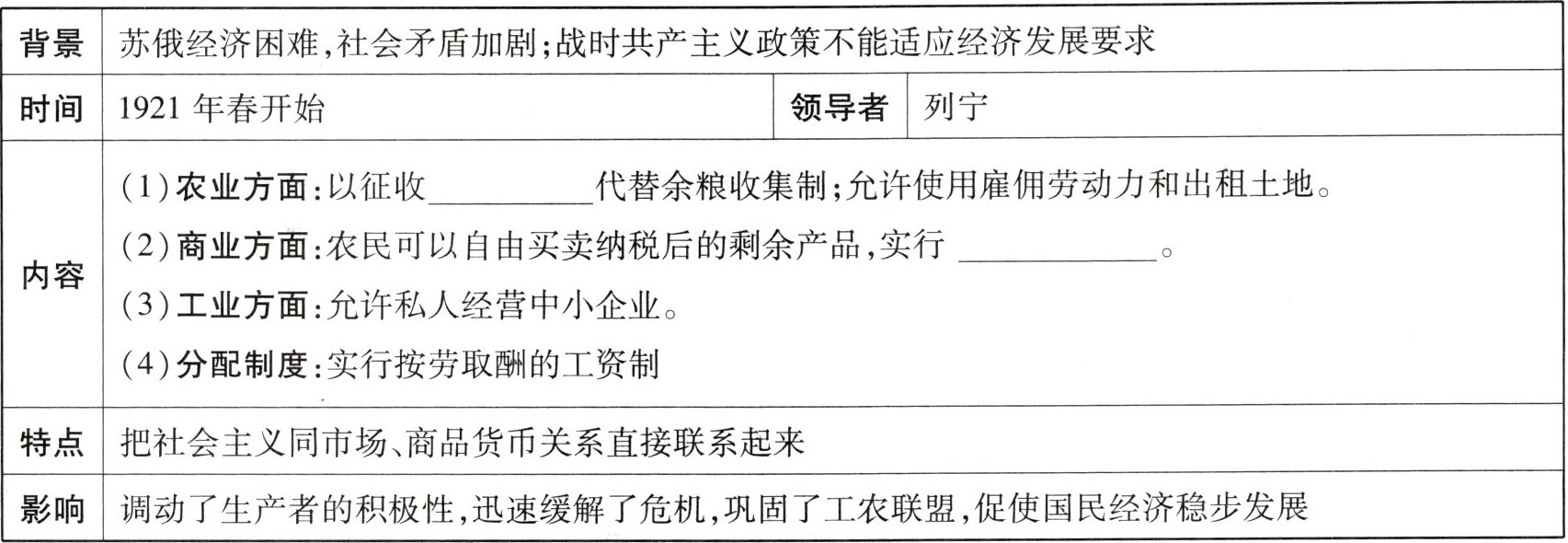|背景|苏俄经济困难,社会矛盾加剧;战时共产主义政策不能适应经济发展要求|