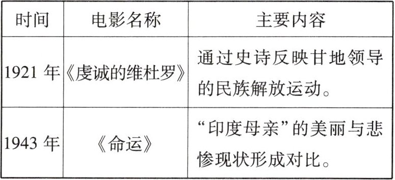 2. (2024·广东)如表是 20 世纪 20—40 年代印度拍摄的两部电影的简介。这两部电影都( )